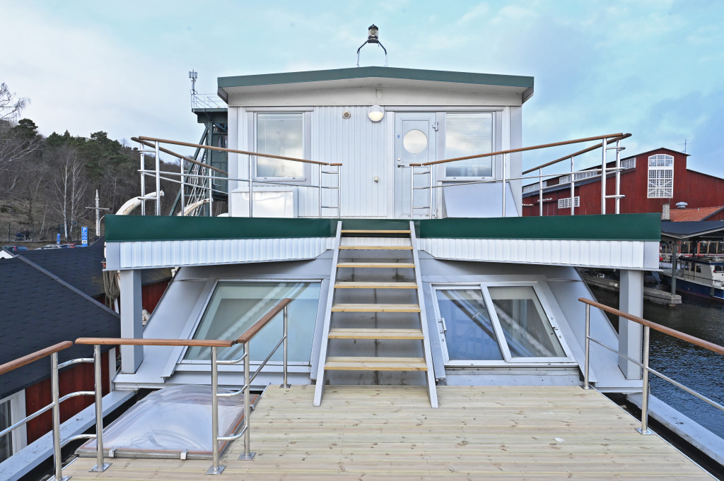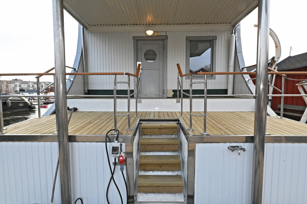 The registered houseboat Konstantin offers a total living area of just under 130 square meters and impressive spaces for spending time outside with three spacious balconies/terraces.