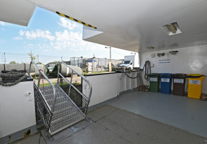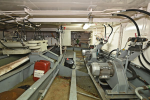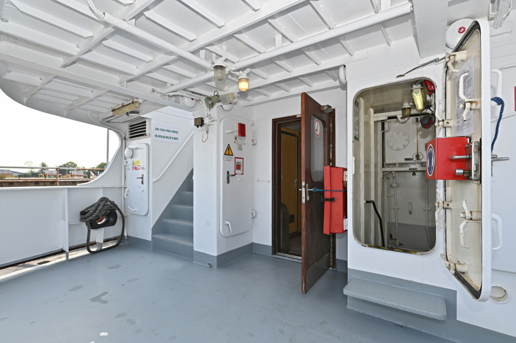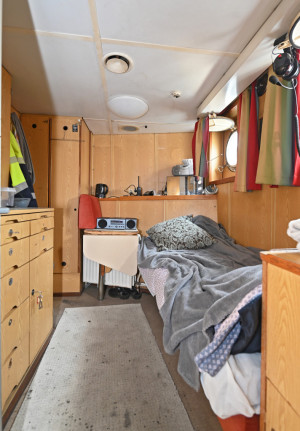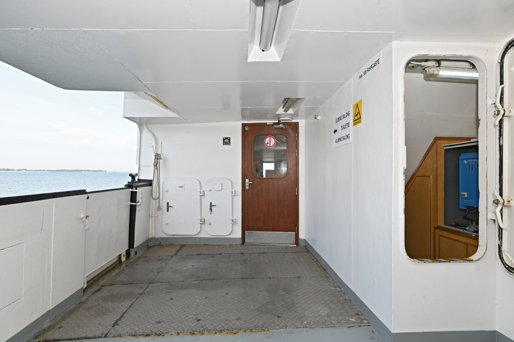 Main deck with lounge with just under 20 tables with seating for approx. 6 around each table (which are extendable), men's and women's toilet, cleaning area. Single crew cabin.