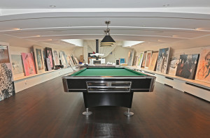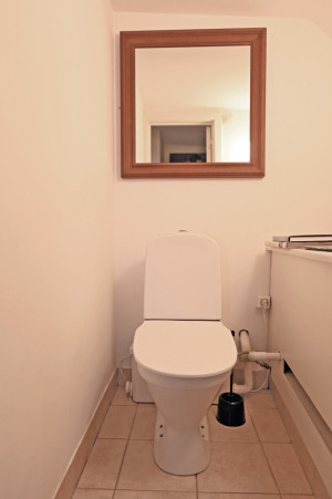 Från en spiraltrappa från salongen på huvuddäck eller direkt från utsidan kommer man ner i den stora galleridelen på drygt 100 kvm. Här finns en gästtoalett och en vedkamin. Från det stora takfönstret om ca 3 x 6 meter flödar det naturliga ljuset ner.