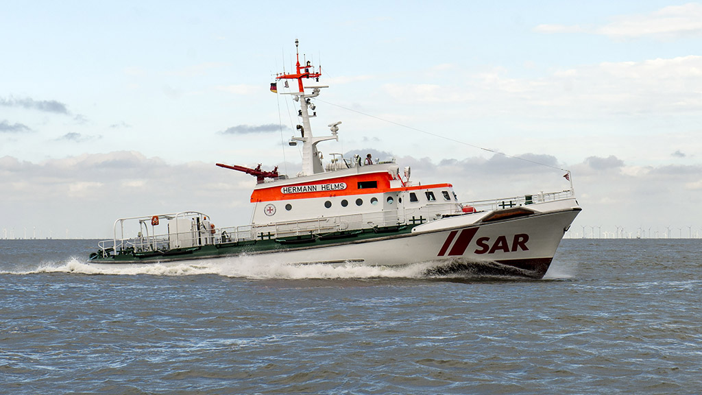 Räddningskryssaren Hermann Helms med räddningsbåten "Biene" som sjösätts genom hydraulisk akterspegel. 27,5 x 6,5 meter. Byggd på världsberömda Lürssen Werft, Bremen, Tyskland 1985. 4 hytter och 6 bäddar. 3 huvudmaskiner, alla renoverade inklusive hjälpmaskinerna.
